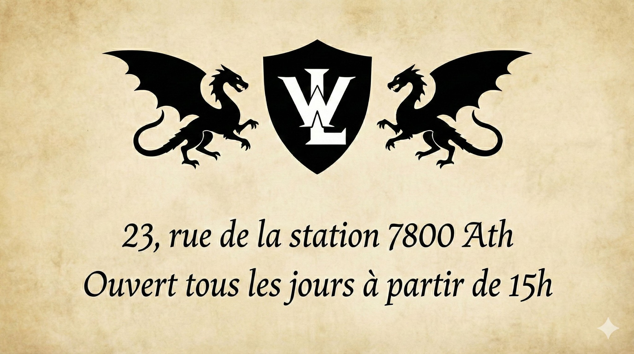 Nous sommes également atypiques par le thème du bar. En effet, l’idée de notre bar est de vous plonger dans l’ambiance d’une auberge médiévale ! Et pour ce faire, nous avons mis les petits plats dans les grands, car au-delà de vous accueillir dans un bâtiment datant de plusieurs siècles (dont même la façade est classée au patrimoine Wallon), nous avons installé un décor vous faisant traverser le temps !